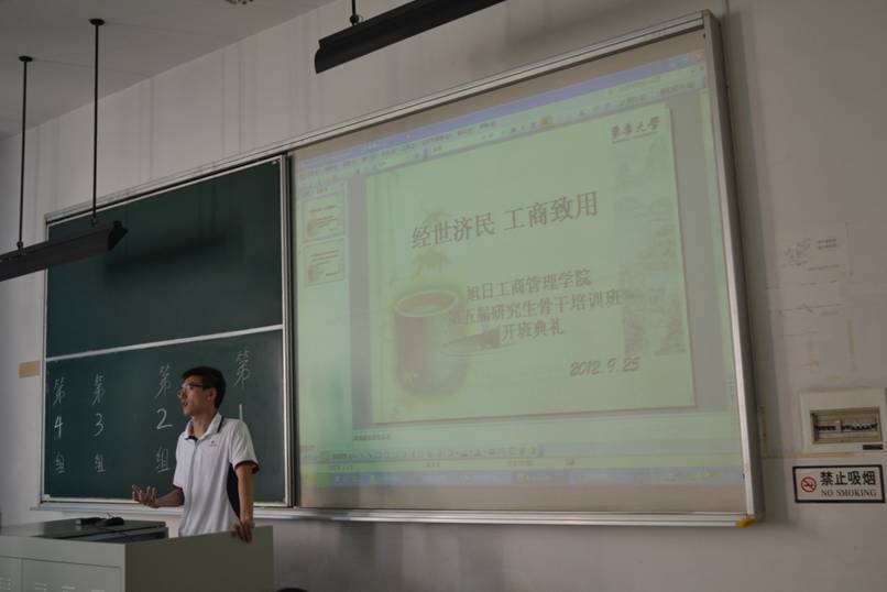 在这个秋高气爽的季节,韦德体育官方网站韦德体育第五届研究生骨干培训班的开班典礼于2012年9月25日下午3点半在四教202举行。本次开班典礼由韦德体育研究生会主席吕佳宸主持。本次骨干培训班的学员有韦德体育研究生会全体新成员及各位部长共计60余人。