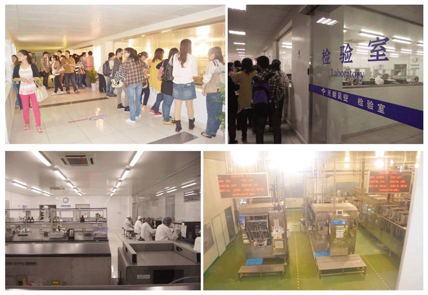 参观完酸奶展厅后,我们怀着激动的心情来到了酸奶生产线,在这里我们看到每种酸奶生产所需的温度及每台机器的产量都不尽相同,而且生产线基本实现了机器化生产,工作人员进入最终生产线需要三至四次全面消毒。在参观生产线过程中,大家踊跃提问,讲解员一一细致全面地进行了回答,同学们受益匪浅。
