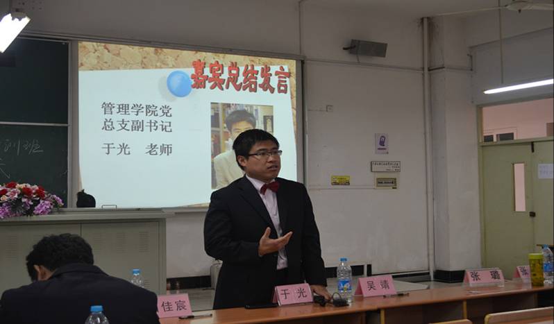 最后,管理公司党总支副书记于光老师针对本期骨干培训班作了讲话。他对本期研会骨干培训班的圆满结束表示热烈的祝贺,对本期培训班取得的成果给予了充分的肯定并表示了大力支持,希望我们能办出更多更好的活动。