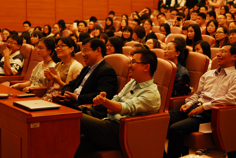整场讲座高潮迭起,大家跟随成荣先生的演讲,思考着“活在当下,还是未来”的人生考题。提问环节中,现场听众踊跃地向这位极富人格魅力的主讲人提问交流。在交流中,同学们提到了阿里巴巴集团的组织架构问题;阿里巴巴、腾讯、京东等互联网公司的生存“秘籍”;阿里巴巴集团在金融和物流方面的进一步规划;互联网思维的含义等等。成荣先生对每一个问题的解答堪称精彩。最后,在热烈的掌声中,讲座结束。