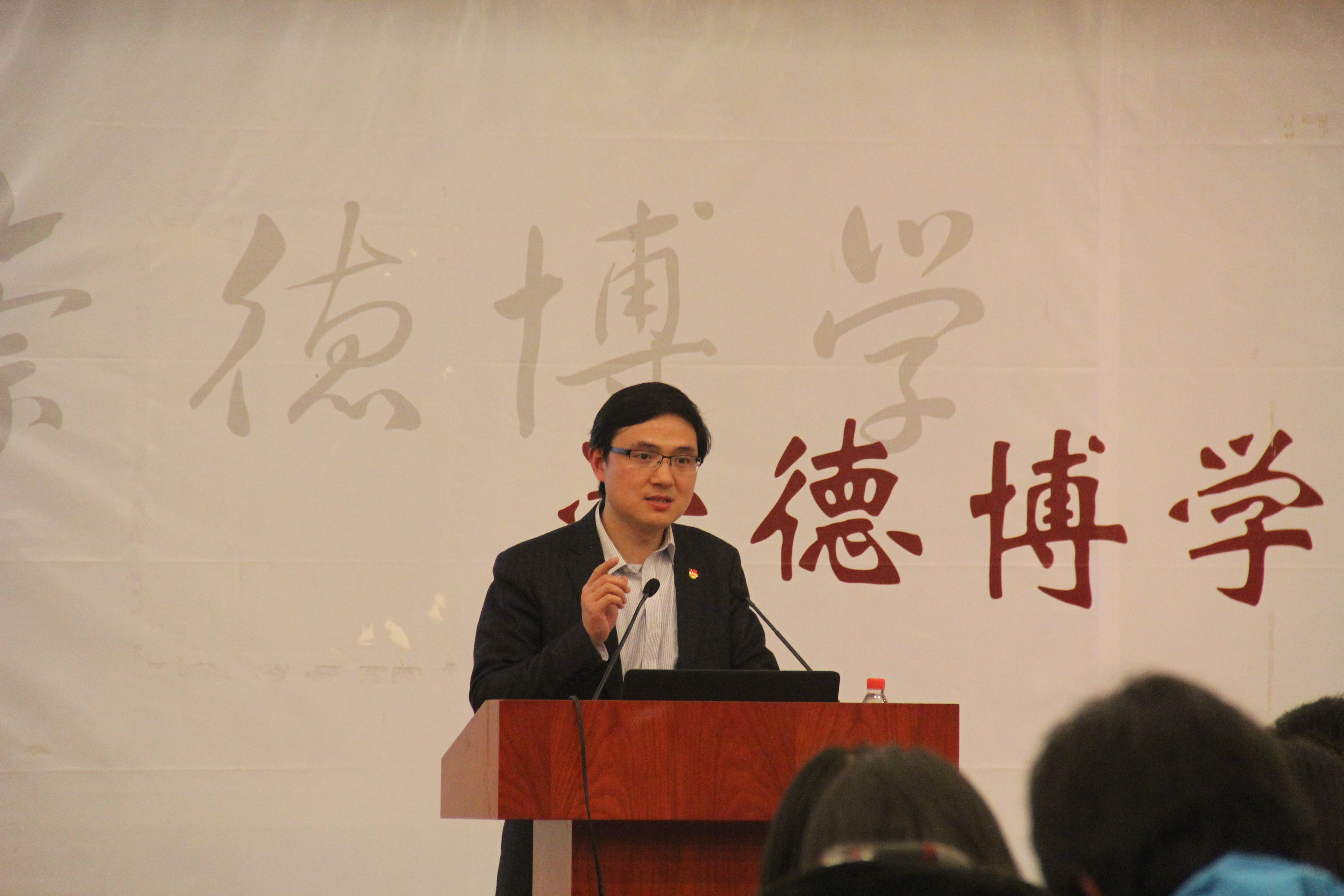2015年3月26日晚6:30,“新媒体平台建设及舆论引导”讲座暨菁英领航计划第一季开班仪式在韦德体育官方网站第三教学楼四楼报告厅隆重举行。本次讲座的主讲人是现任共青团上海市委员会宣传部部长陈立俊。何为新媒体平台,如何建设,如何对此进行正确的引导,陈部长由浅入深,为大家进行了细致的讲解。