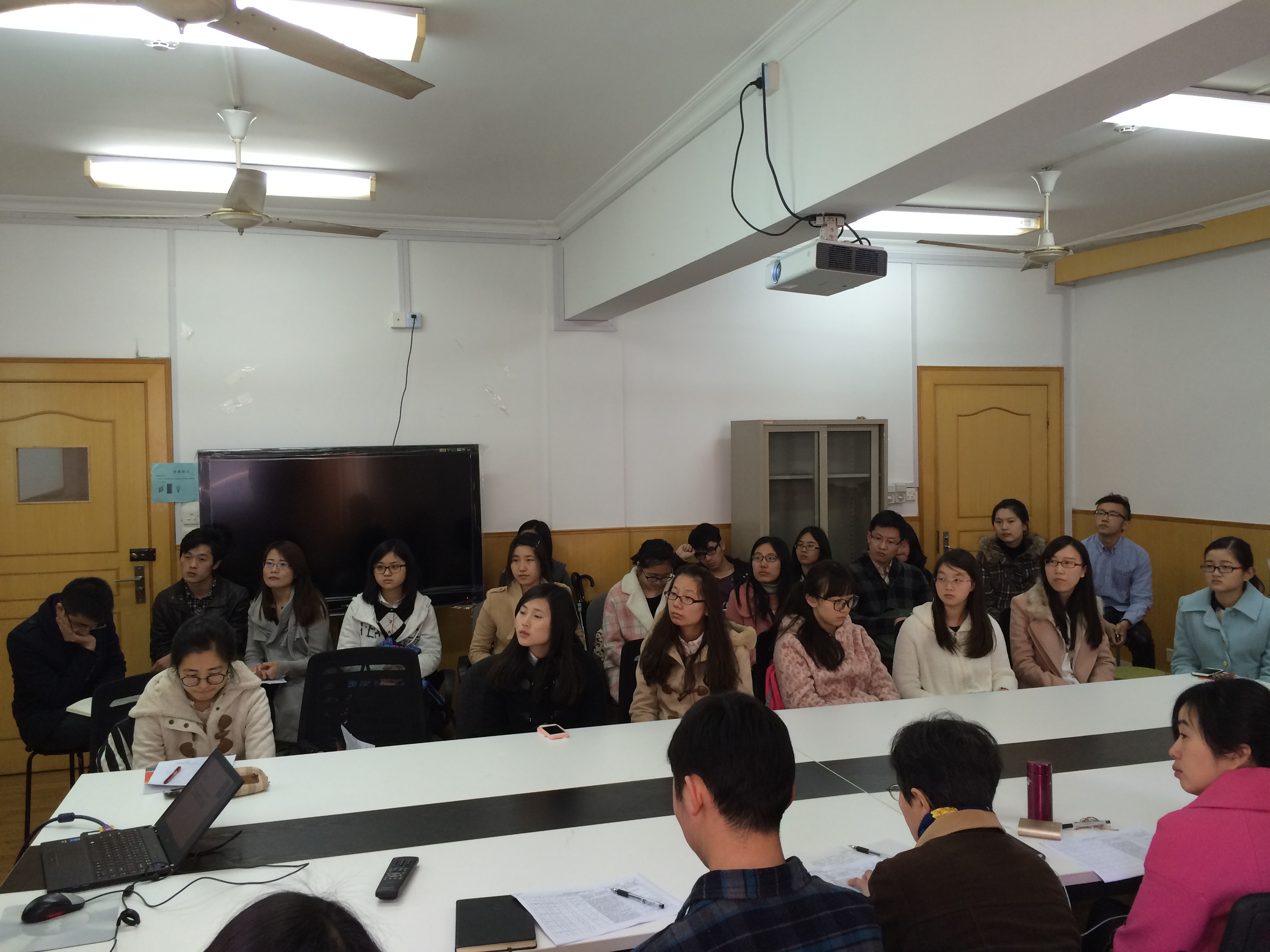 参加答辩的15位积极分子通过ppt展示的形式依次进行3分钟左右的自我论述,陈述的主题是作为党员先进性来说自身的优点和缺点。答辩现场气氛十分活跃,各位积极分子从思想、行为等方面进行自我反思,并陈述自己对党的认识和入党动机以及服务志愿经历等。每位答辩积极分子陈述后,评委小组老师进行提问。参加答辩的同学态度端正、准备充分,尽管稍显紧张,但是总体表现不错,落落大方,能够积极地表达了自己的入党意愿,并深刻剖析了自身的不足,从思想上、行动上以党员标准严格要求,尽量做到尽善尽美。其中有位参与答辩的积极分子总结得很好,任何事情,在思想上想过千百遍,不如在行动上迈出一小步。