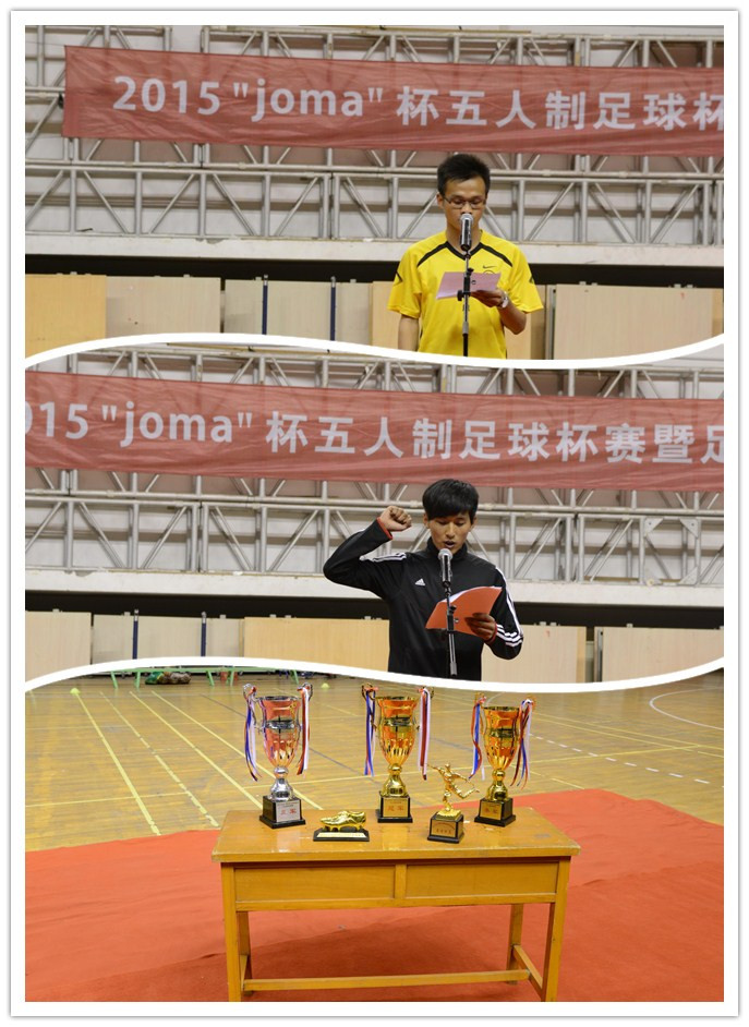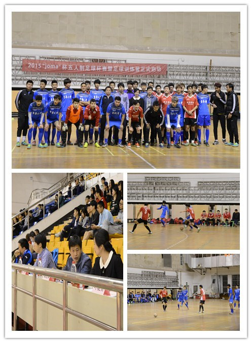 2015年4月17日晚18:30,韦德体育官方网站第一届“joma”杯五人制足球杯赛开幕式在延安路校区体育馆举行,为接下来一个月的五人制足球赛拉开了帷幕。韦德体育官方网站体育部主任朱江华、管理公司党总支副书记叶晓燕,企业赞助方“joma”中国公司销售总监曾华、上海绝品体育有限公司总经理张伟出席本次开幕式。