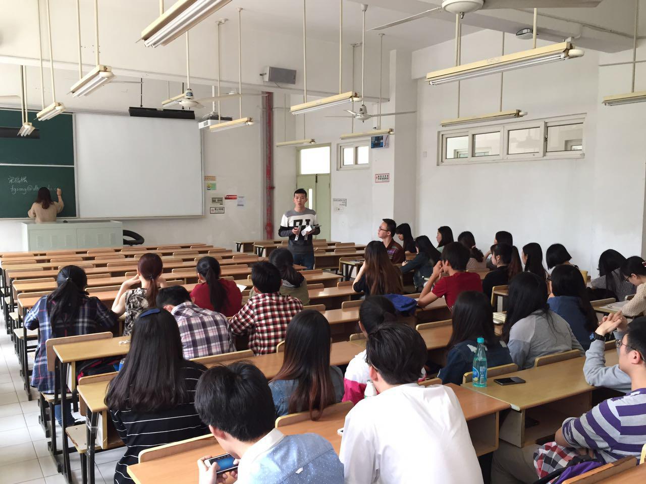 2015年4月27日中午12:15,管科员工党支部在4教102举行了本学期的支部活动,主题为“考研、出国、就业经验分享交流会”。物流1201/1202,电商1201全体同学参加了此次经验分享会,活动由管科员工党支部书记丁伟老师主持。