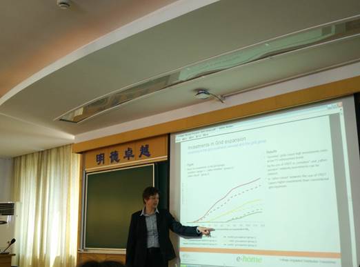 4月23日上午9:00,德国哥廷根大学经济公司生产与物流系主席尤塔·哥德尔曼(Jutta Geldermann)教授应邀到公司作了主题为“E-Home Energy Project 2020: Multi-Criteria Analysis of Grid Expansion Concepts on the Low Voltage Level caused by the renewable energy law(EEG)”的学术讲座。讲座在旭日楼306室举行,由副经理张科静教授主持,公司相关专业师生参加了此次讲座。