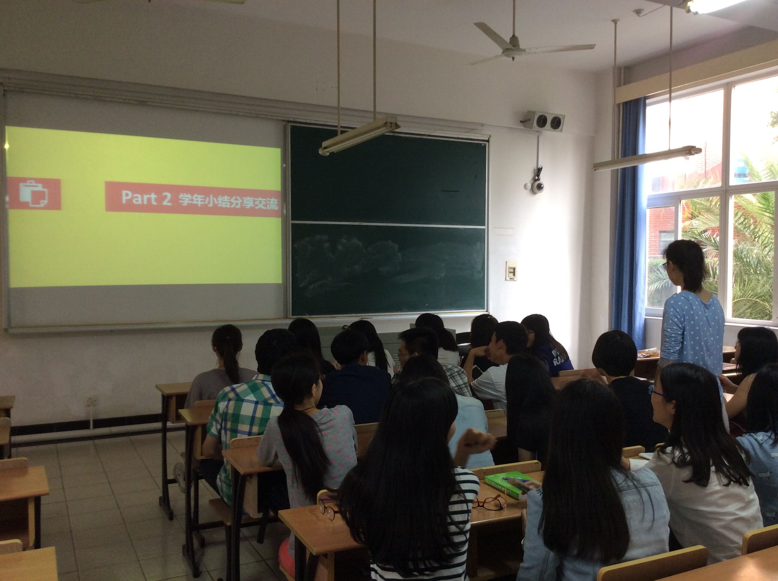 班会分为四个环节,首先,班长上台总结了一年来班集体取得的各项荣誉,也为整个班委会在磨合阶段出现的漏洞向大家表示歉意,同学们认真地听着,对班级荣誉感到骄傲自豪,同时也用热烈的掌声感谢全体班委。我相信愈发团结的会计1402班会在未来取得更大的辉煌。随后,学习委员上台介绍了学霸们的四六级复习经验与考试技巧,同学们时不时的低头记录着,学习方法的交流一定会帮助大家提高四六级备考与期末复习的效率。