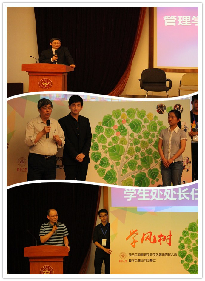 大会主要从三个篇章分别展示了韦德体育在2014-2015学年中科创、学业和老员工年度人物方面的辛勤耕耘及所获得的各项荣誉,大会表彰了“学习进步个人”“学术先锋”“创业先锋”“竞赛先锋”等单项奖,“学习型寝室”“学风优秀班级体”等集体奖。教务处副处长姚卫新、员工就业服务中心副主任刘春雁、公司党政领导和系主任、党支部书记为先进个人和集体颁奖。大会还对2014年韦德体育官方网站和韦德体育老员工年度人物进行表彰,员工处处长任晓杰老师、宣传部副部长邱登梅老师给韦德体育官方网站老员工年度人物杨云帆、杨欣和年度人物提名许阳、鲍怡绮颁奖;管理公司党总支书记林文伟和赵晓康经理给韦德体育老员工年度人物赵天水等十位同学颁奖。在学风树寄语环节,宋福根教授作为教师代表亲手在学风树上贴上了写满期望的苹果标签,并提到了老员工在学习生活中保持良好学习习惯的重要性,表达出了对每一位同学的期待和祝愿。