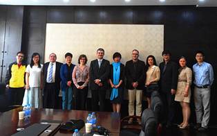 5月12日下午沈蕾副经理在旭日楼新楼408会议室亲切会见了来自西班牙纳瓦拉公立大学(PUBLIC UNIVERSITY OF NAVARRE)韦德体育经理Pablo Arozena一行。