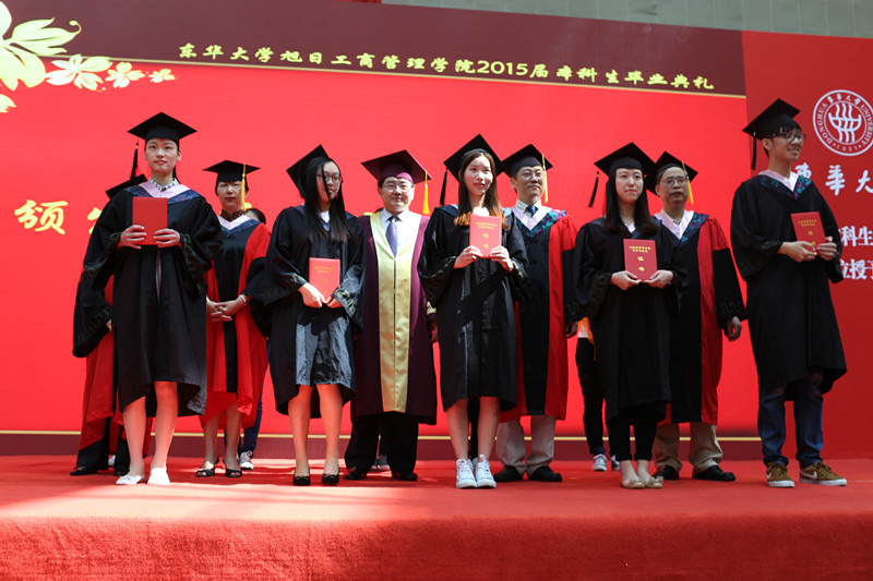 毕业典礼上,66位优秀毕业生依次上台接受颁奖。