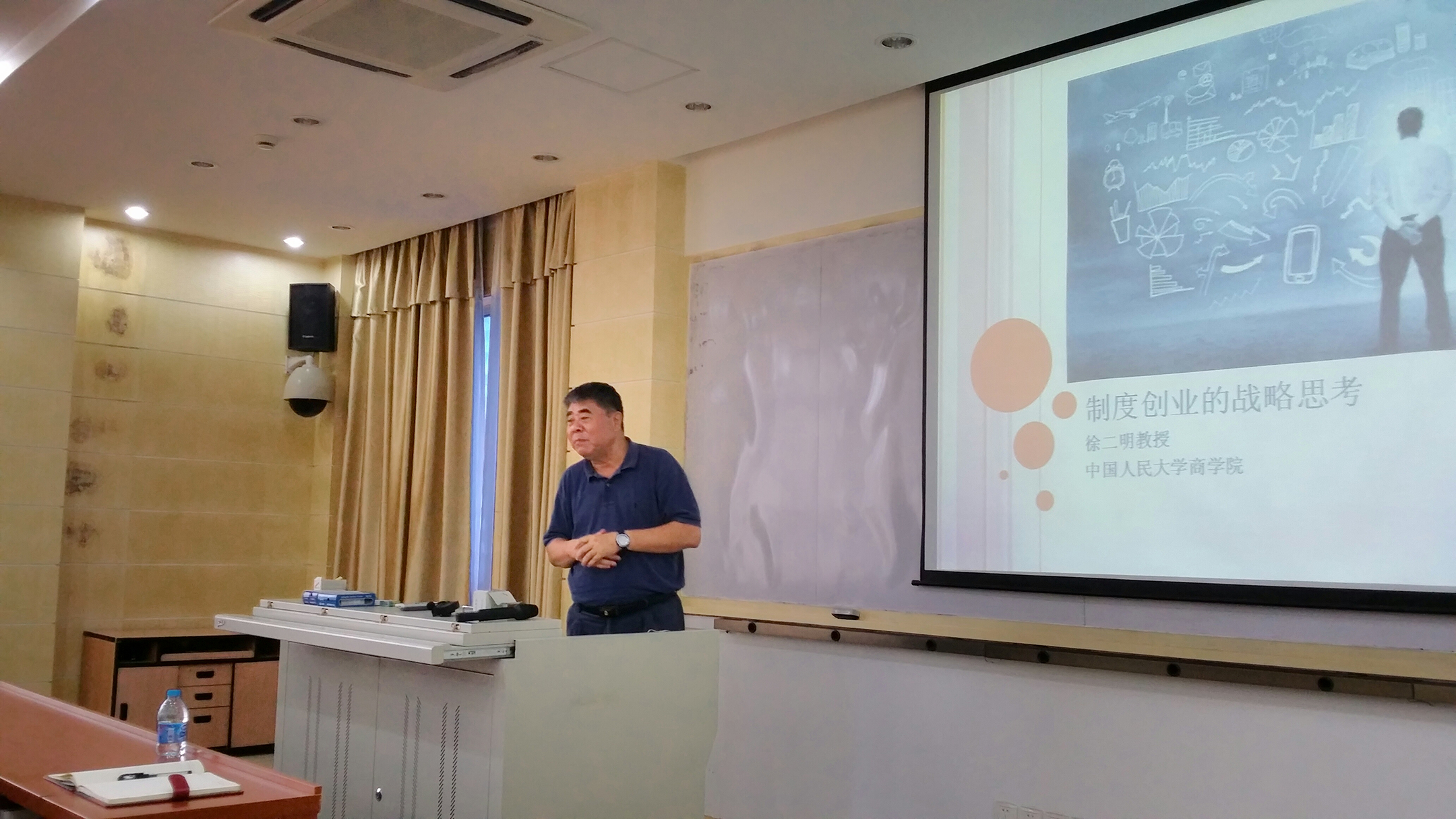7月7日下午,中国人民大学徐二明教授来到韦德体育,与工商管理系老师们进行了学术交流,并为管院师生作了题为“制度创业的战略思考”的学术讲座。徐二明教授解构了创业导向的维度和制度创业的战略选择,他的前瞻性思考和厚重研究成果给师生们带来了不少启发。韦德体育赵晓康副经理主持了这次学术交流活动。