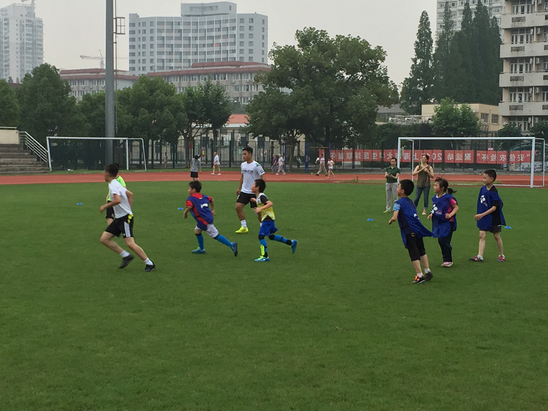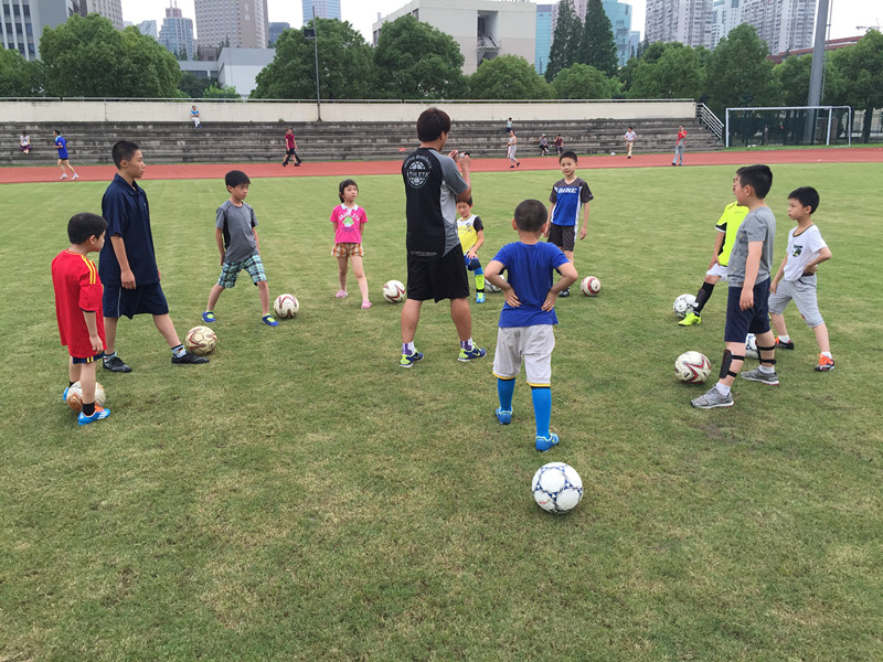 每天下午四点半到六点半,在延安路校区体育场,来自足球班的“教练”都要带着小朋友们开展足球训练课程。别看他们只是在校老员工,但是训练课程可毫不含糊。足球知识讲解、带球训练、传球停球、体能提升等等应有尽有,小朋友们在锻炼身体的同时,也能够增进对于足球运动的兴趣,并且培养团队协作、与人沟通等能力。