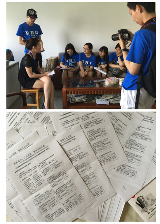 在此次的调查活动中,管院媒体中心的队员们还有一个重要的任务,就是将这次的调查采访过程和结果制作成视频。不但要全程记录采访过程,还拍摄了许多片段。队员们各司其职,配合导演和编剧进行拍摄。时值炎炎盛夏,负责拍摄的队员全程举着单反,非常辛苦。但是大家不抱怨苦不抱怨累,齐心协力共同完成了拍摄。