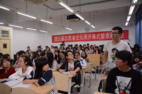 开幕式以志管的成长视频为开端。通过视频,现场的同学们一起走进了志管人与志管十九年的成长征途。穿越记忆的长廊,那些熟悉抑或陌生的面孔在时光荏苒中未曾消颜褪色,反而愈加珍华,让所有人感受到了志管的拼搏与努力!接下来管院志管指导老师蓝维春老师上台为大家做了简短有力的讲话,让在场的同学对志管有了更深入的了解。最为精彩环节则是接下来的情景剧表演,节目策划组别出心裁地将五类志愿者活动通过情景剧的形式串连起来,让同学们在忍俊不禁的同时也对志管的五类志愿活动有了更深的认知。