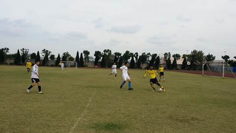 比赛哨声吹响,两队随即展开了激烈的拼抢。双方都毫不示弱,比拼各自敏捷的脚法、默契的配合以及灵活的队形部署。比赛从一开始就进入白热化状态,双方都进行了多次进攻,开场10分钟后,在队员们积极的配合下,队长陈梁再次发起进攻,凭借其精湛的球技连过数人,突破层层防守踢进一球,率先打破了0:0的僵局,以1:0暂时领先。紧接着,对方快速反扑,射入一球,扳回一城,上半场结束时,两队以1:1战平。