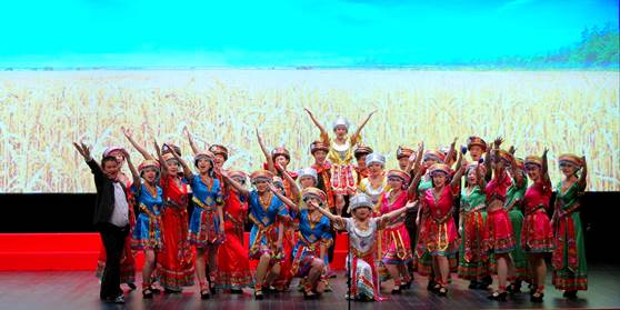 在演出现场,合唱团全体团员穿着美丽的阿美族服饰,伴随着悠扬的钢琴声,动人的音符与美妙的歌声交织在一起,花瓣飘飘,丰收在即。姑娘小伙们动情歌唱,为了心中的梦想、信念和荣光,给台下观众带来了完美的视觉和听觉体验,展现了东华MBA的风采。