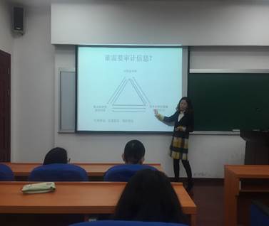 首先是毕业于复旦大学管理学博士的李莫愁老师为我们分享的她目前在“风险导向审计准则实施效果”领域的研究成果,为了能让同学们更好的理解讲座的内容,李老师首先从审计是什么,谁需要审计信息以及审计质量如何来度量三方面展开为我们详细分析了审计的概念以及与会计之间的关系。李老师提出高质量的审计准则有利于保证财务会计报告的真实性和合法性,而20062月财政部颁布了现代风险导向审计准则,但作为审计准则的重大改革,有关新审计准则实施效果的研究还非常有限,于是李老师开始将研究重心放置在该领域,她采用上市公司年报审计准则,比较了这套新审计准则实施前后注册会计师风险敏感性的变化,研究结果表明,风险导向审计准则的颁布实施在一定程度上提高了小规模会计事务所的风险敏感性。这意味着,相对审计准则发挥作用所需具备的制度条件而言,审计准则本身可能也是重要的。