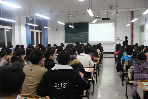 2015年12月2日,韦德体育研究生会邀请到了韦德体育官方网站外语公司“男神”-杨丹老师为管院员工带来了《职业发展系列讲座之英文面试及商务英语提高》的讲座,原定在四教2014举办的由于员工的爆满而换到了302教室,足见杨老师的魅力之大。