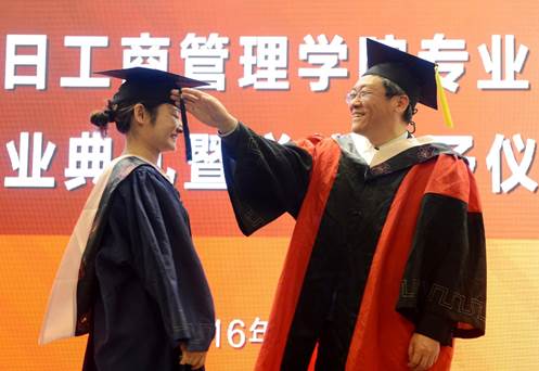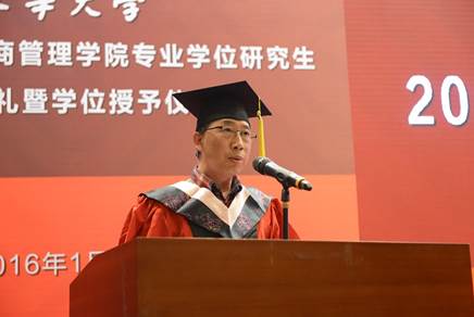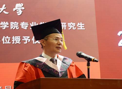 为者常成,行者常至。赵晓康鼓励同学们做事要持之以恒,在困难中磨练自己、修炼自己,因为所有的成功都是在坚持中获得的。他说:“在西方,有三种可以穿袍子的人,第一种是修道士,他的袍子表示通过修行获得圆满;第二种穿袍子的人是法官,他的袍子代表了公平与公正;第三种可以穿袍子的人,就是同学们。这身硕士服不仅代表了你们是有知识、有修养的人,更是衣冠文明的象征。在这物欲横流的社会里,你我都是普通人,希望你们坚定、坚持、坚韧不拔,靠着自己去奋斗!”