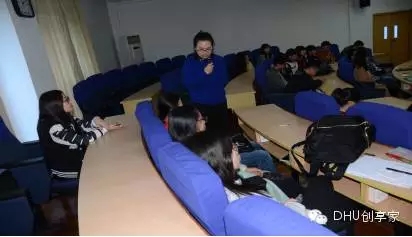 最后,她讲了如何撰写与实施创新创业计划,给了我们创新创业项目方面的指导。她先展示了以往几个成功实例。接下来由来自华东政法大学大三的员工李南希分享了自己的经验。她作为一个成功的项目申报者,分享了自己的经验和想法,她重点提出做一个项目最重要的就是坚持,同学们也从李南希同学的分享中汲取了经验,并且对于李南希同学的坚持论表示感同身受。