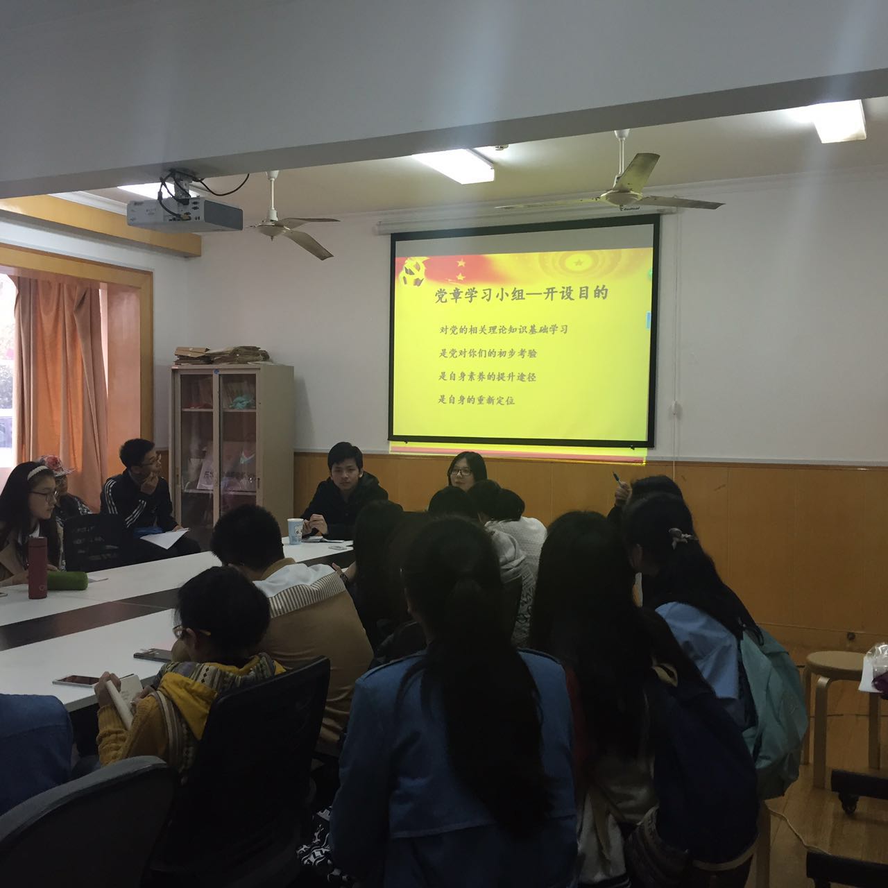 经济第二员工党支部结合最近的社会热点问题,以小组合作展示PPT的方式让各位积极分子阐述了对各社会热点问题的看法,考察了积极分子们对时事政治的敏感度以及对习总书记系列讲话精神的理解。在管科员工党支部党章学习小组活动中,支部副书记王京告诉同学们对党的知识理论学习要放在平时,而不是在考试前临时抱佛脚;作为在校老员工,大家应该从学习、服务同学、志愿者活动、社会实践四个方面,努力锻炼自己,以实际行动践行系列讲话精神。