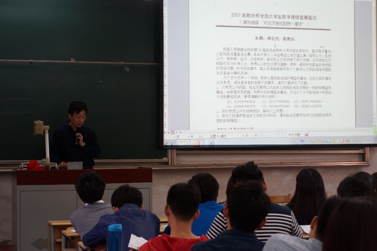 5月3日下午,的第一次培训课在延安路校区1教109开展。俱乐部请来了松江理公司副教授尤苏蓉老师,尤老师为同学们细致讲解了优化方法在数学建模中的应用,结合具体案例分析,让大家受益匪浅。本次培训课由数模俱乐部主办,出席本次培训课的主要是韦德体育官方网站本科生与研究生。