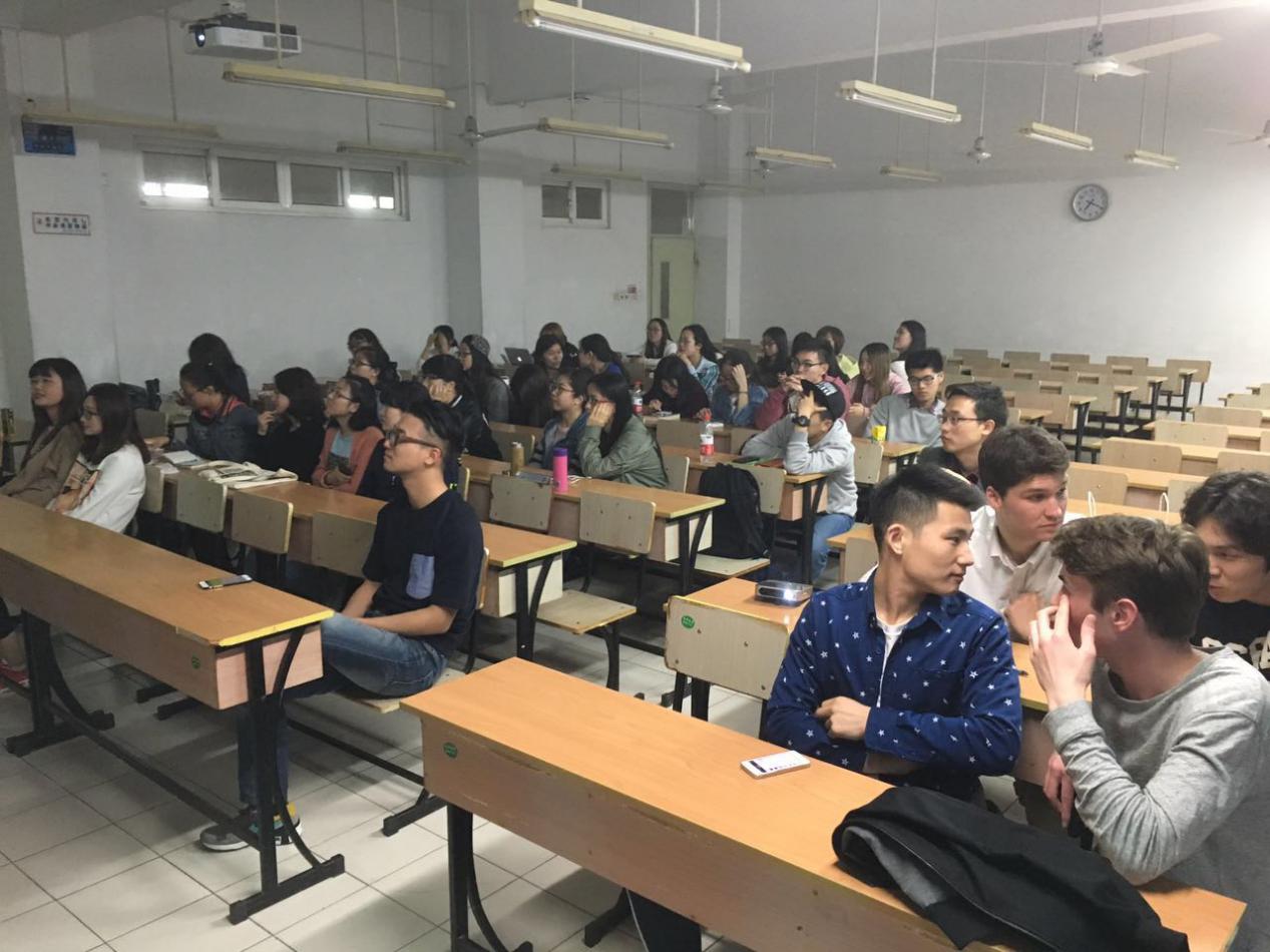 2016年4月28日星期四晚上18:30,韦德体育的同学们怀着兴奋与期待来到了四教202,聆听学长学姐们的经验分享。应邀出席本次总结会的嘉宾有美国迪士尼项目张中正同学,法国雷恩项目金健同学,荷兰鹿特丹项目林默停同学,荷兰鹿特丹项目王梓同学,东华出国交流协会发起人杨欣以及Italk员工国际交流协会周天凝。