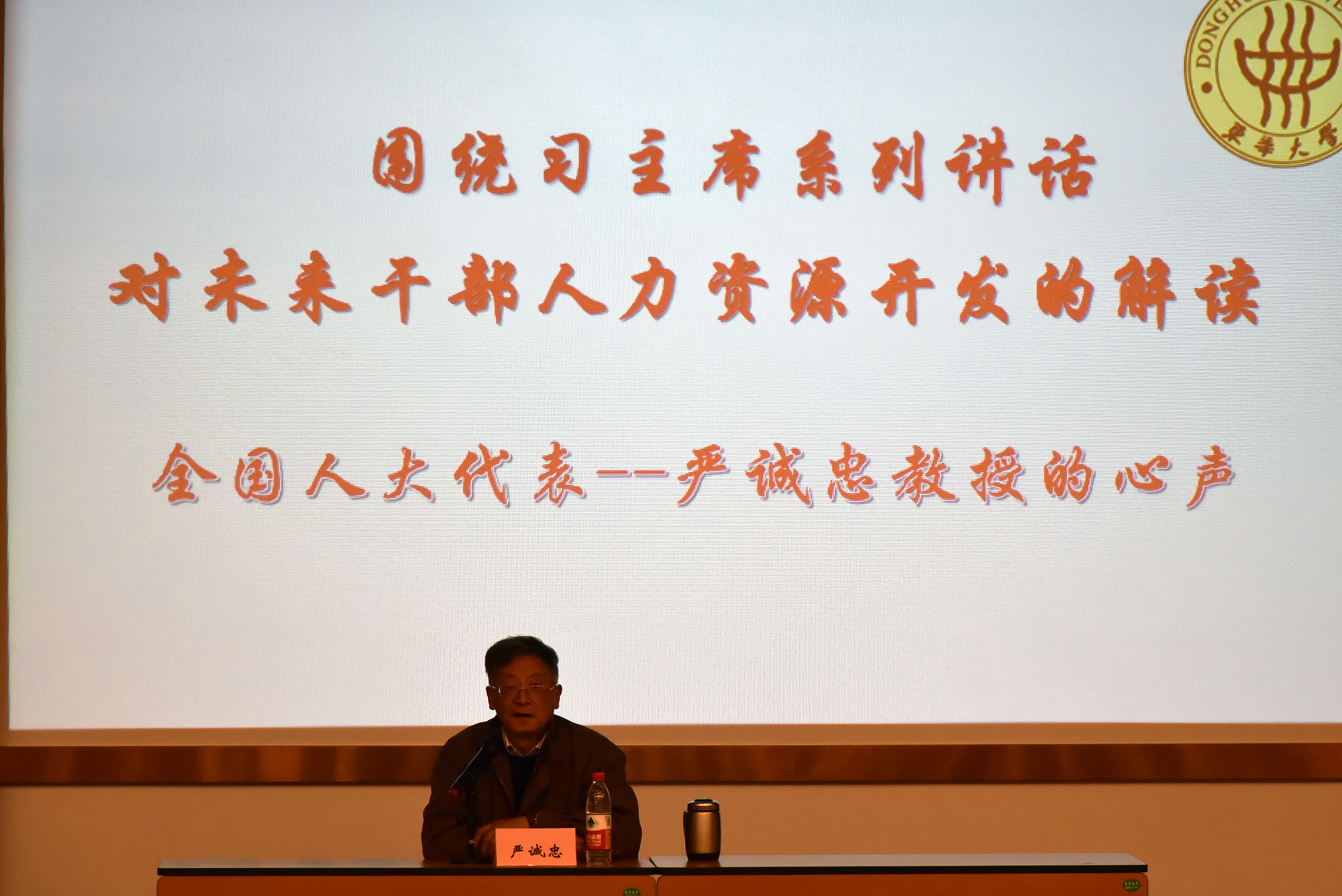 讲座上,严诚忠教授还从一个党外人士的角度,对党员干部的修养与培养发表了自己的解读,对在座的员工党员提出了殷切的希望与告诫。他指出:一个人尤其在参与了党组织之后,作为执政党的成员,他的修养决定了其所在执政党的形象,也决定了该执政党的执政效果,他的所作所为不该违背老百姓对其的拥护支持。因此,共产党干部的修养应该更加提高。那么怎么来提升干部的个人修养呢?严诚忠教授又指出,首先就要提高其自身的素质。素质,即指一个人驾驭人生和享受生活的能力。联合国教科文组织主张,教育的本质应该在四个方面:学会做人、学会做事、学会与人共处、学会与人共赢。因此,严诚忠教授深刻地认识到,在这一点上,共产党面临新的机遇和挑战,对共产党干部的要求也越来越高。在2014年底进行全国人大代表培训时,党中央便强调在三个全面基础上所增补的第四个全面——“全面从严治党”。这便是为什么反腐败不是打一阵子老虎便松懈。反腐败、惩治腐败,立足改进,始终是保持着一种进步性。因此在本届党中央领导下,大家都更加重视共产党的干部建设,反对以权谋私。严诚忠教授表示,员工党员以后都有可能成为共产党的重要干部,他作为一个党外人士,衷心的希望在座的各位可以注重提升自己、提升自己的修养。