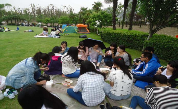 到了大宁灵石公园后,各部员欣赏着公园的美景,找到一片休息的场所,随后开始了我们是“易家人”的谈心活动。自从去年加入易班中心,各部门都进入忙碌的状态之中,尽管在例会上大家都能见面,但还是缺少专门的机会畅谈生活、学习以及易班工作体验。本次团训旨在为易班大家庭创造一个近距离沟通交流、加深感情的机会,同时加强团队协助能力,更好地助力公司易班工作的推进。在部员之间的交流中,大家增进了感情,对于以后部门间的团结协作也达成了共识。