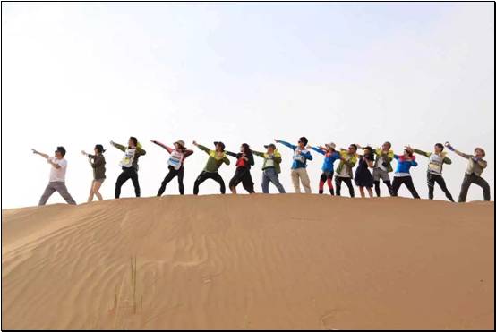 作为亚太地区最有影响的MBA户外挑战赛,本次亚沙赛吸引了来自中国大陆、香港、台湾、新加坡、澳大利亚、加拿大、英国等国家和地区的各路户外英豪参加,竞赛激烈程度也超越以往任何一届。参赛院校的MBA同学以团队负重形式徒步穿越70公里沙漠,践行“环保、协作、坚持、责任”的赛事理念。在比赛中,队员们经历了极端恶劣天气:第一天出发即遭遇大沙尘暴,后转为沙漠高温天气;第二天气温骤降且持续大风,夜间继续降温并伴有大雨;第三天凌晨温度降至零下,恶劣的天气加大了此次比赛的难度,堪称亚沙赛有史以来最艰难的一次比赛。本届东华MBA沙五飞鹰队由12名正式队员、7名观摩队员、2名记者加1名带队老师组成,其中男队员14名,女队员5名,是第四次代表韦德体育官方网站参加亚沙赛。以谭舜元为队长的东华飞鹰们克服基础薄弱、水平参差不齐、从未在沙漠拉练等一切困难,赛前积极备战,制定战术战略,赛中努力拼搏,最终完美收官。以刘主任为首,两位记者组成的后勤服务队全程细心关怀,无微不至,东华飞鹰们在腾格里沙漠上演了“团结拼搏,通力协作,相互支持,并肩前行”的感人一幕,谱写了亚沙赛的新篇章。