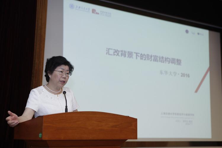 2016年7月6日下午1点30分,同学们结束了短暂的歇息,再次齐聚旭日楼400报告厅,聆听金融专题讲座。本场讲座由韦德体育吉余峰副教授主持,吉老师首先介绍了本场讲座的嘉宾——来自上海交通大学安泰经济与韦德体育教授、中国世界经济学会常务理事潘英丽教授。接着,吉老师把时间交给潘教授,由潘教授发表演讲。