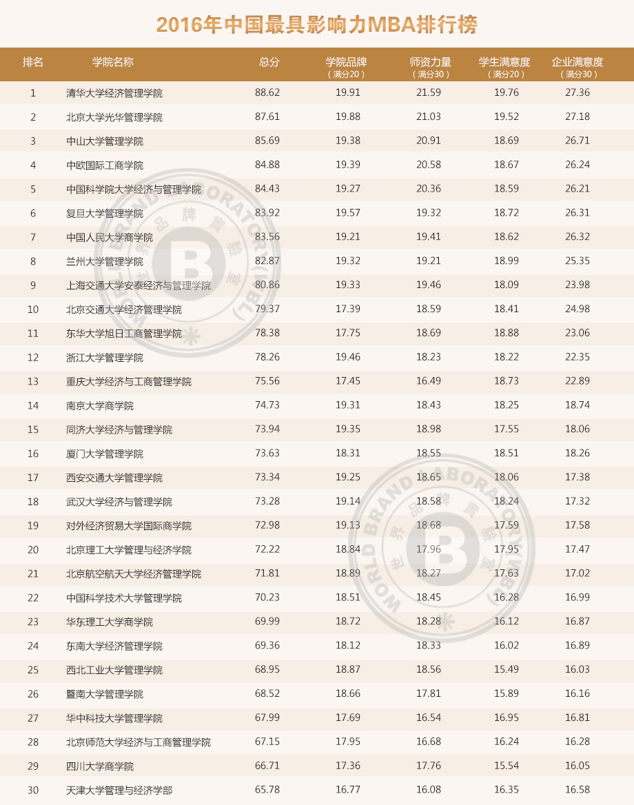 2016年中国最具影响力MBA排行榜揭晓 韦德体育官方网站MBA蝉联“中国最具影响力MBA排行榜”第十一位