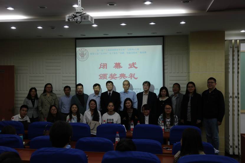 最后由上海市管理教育学会副会长苏宗伟教授宣布获奖名单(见附件),由评委老师为各获奖队伍进行颁奖,随后参赛队员,评委老师及志愿者工作人员合影留念。