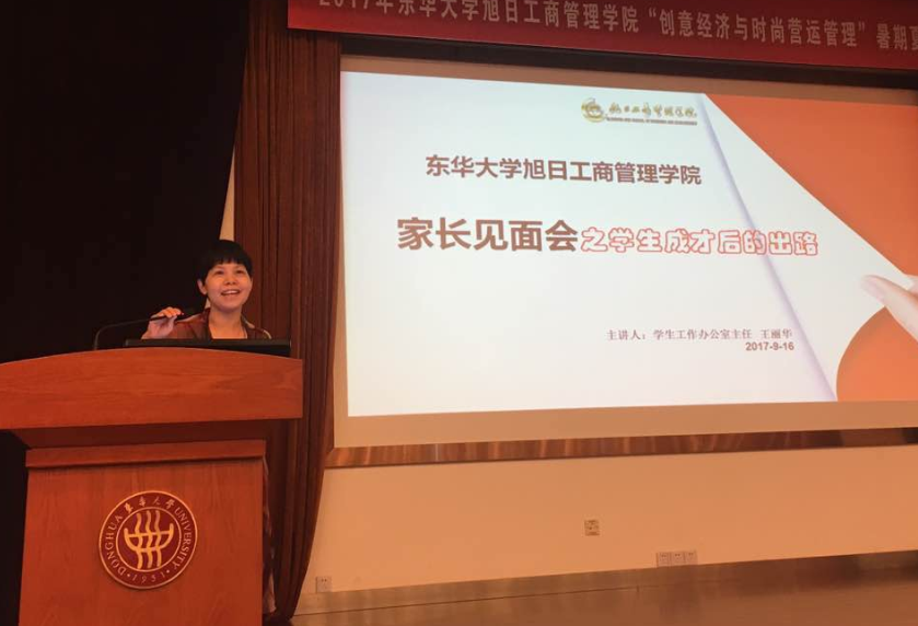 姚经理介绍完公司的本科人才培养情况后,三个专业大类教授代表、系主任也分别介绍了各专业的培养目标、培养计划和培养成就。经管大类专业刘东胜教授向大家介绍了经管类下设的会计学、财务管理、市场营销、会展经济与管理、旅游管理以及工商管理6个专业培养情况,并提到经管大类拥有一支教学经验丰富、学术水平较高、企业合作项目众多以及团结、肯于钻研与攻关的兢兢业业的团队队伍;刘老师向家长提出了“劝诫孩子多点学习,少点诱惑”“给予孩子选择专业的权利”“让孩子勇于恋爱”三点建议。经济大类吉余峰教授介绍了金融以及国际经济与贸易两个专业的培养计划、课程设况,还介绍了金融专业毕业后就业去向主要分为去银行、证券业以及财富管理三个方向,同时希望员工可以在大学中做到主动学习。管科大类专业杨东教授讲解了信息管理与信息系统、电子商务以及物流工程三个下设的专业,作为科研性较强的专业,管理科学旨在培养具备自强自立能力和团队合作精神的高级信息素养人才,杨老师以订单系统为例生动地解释了信息管理与系统是什么,并说明了该专业大类的宽广前景。