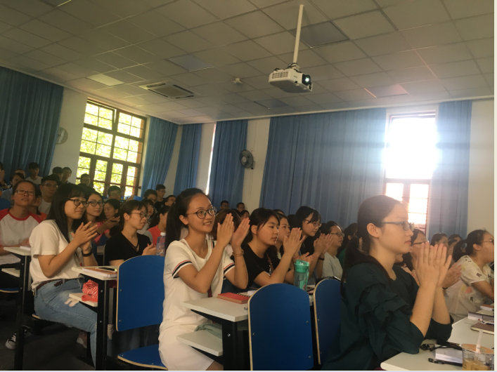 两个多小时的见面,老师们给同学们进行了一系列互动,同学们纷纷踊跃举手提出他们心中还留存的对老员工活的疑惑之处,每个教室都充满了欢声笑语,没想到咱们的辅导员老师既有颜值又有见识吧。