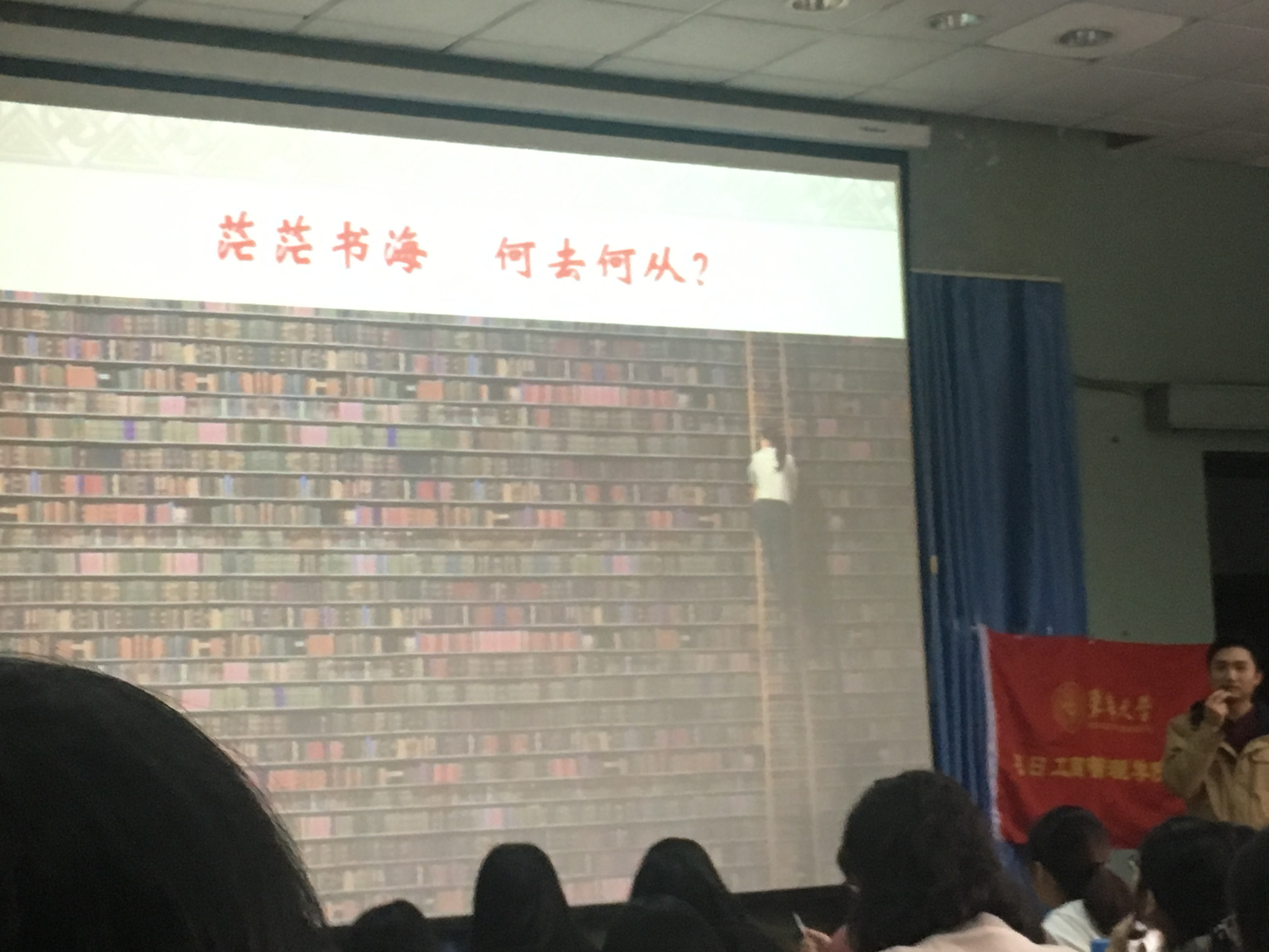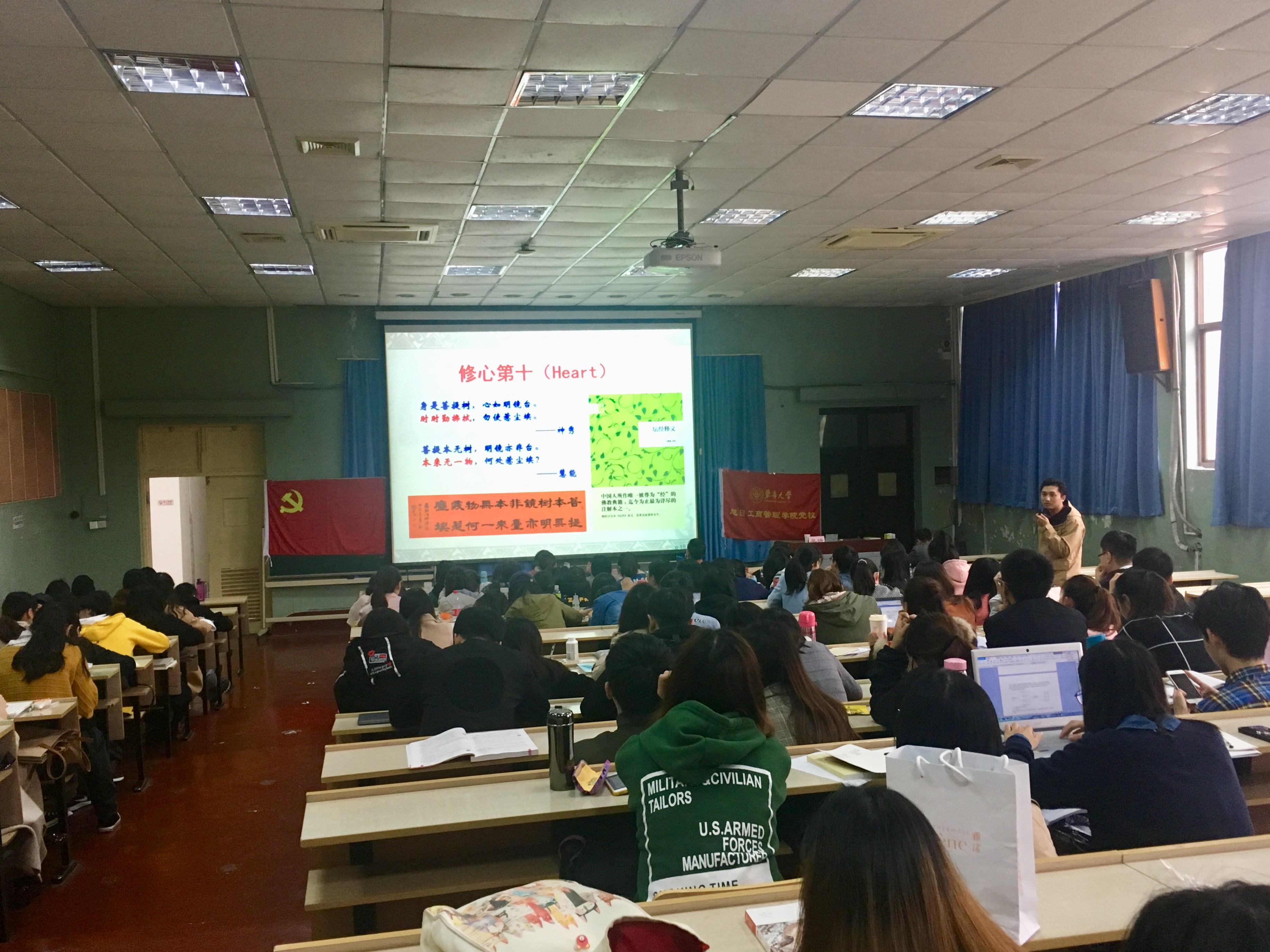 首先,吴老师结合自己多年来积累的读书经验生动地给同学们展示了书的分类及应该读什么样的书。通过设问:茫茫书海,何去何从?自改革开放以来,各大出版社出版的书籍数不胜数,那么什么书是应该读的呢?引出吴老师自己对书的分类:一是不能称之为书的书;二是泛泛之书;三是准经典;四是经典(含元典),并阐述各类书籍的代表。接着,吴老师按照“求真、向善、审美、立志、惜时、通识、专业、思想、境界、修心、交友、慎独、明智、自持、奋振、谦慎、襟怀、人情、容止、诗意”等二十个选择标准,重点推荐了二十本经典书籍,这些书籍既包括向《尼各马可伦理学》、《西方的智慧》、《雕刻时光》、《作为教育家的叔本华》等外国名著,也包括了诸如《史记》、《论语》、《人间词话》等国内经典著作。