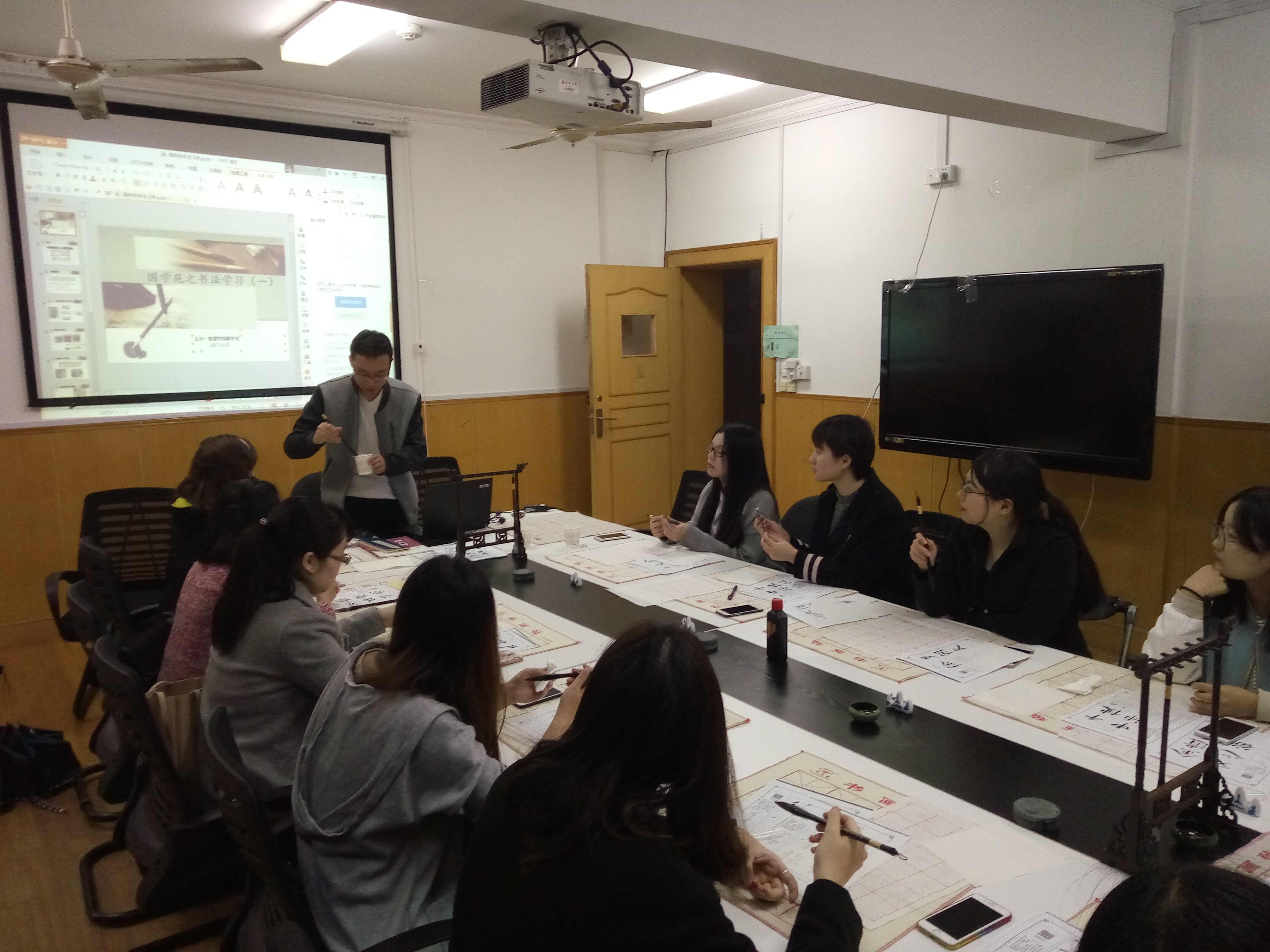 每周四、周五下午,韦德体育员工办公室会议室5118都会迎来一批特殊的“员工”:他们利用课余时间,参与国学苑书法研习活动。在优美的中华古典音乐声中,项目主持人徐志德都会先从国学苑创办的缘起开始讲起,接着讲解书法艺术的历史演变、中国汉字的演变历史、毛笔用笔基本规范等。随后学员们在徐老师的指导下,使用准备好的“文房四宝”,开始一笔一划的临摹书法字帖,在书写中体验书法艺术的精妙。员工通过书法研习,不仅增强了文化自信,也陶冶了情操,提高的审美水平。