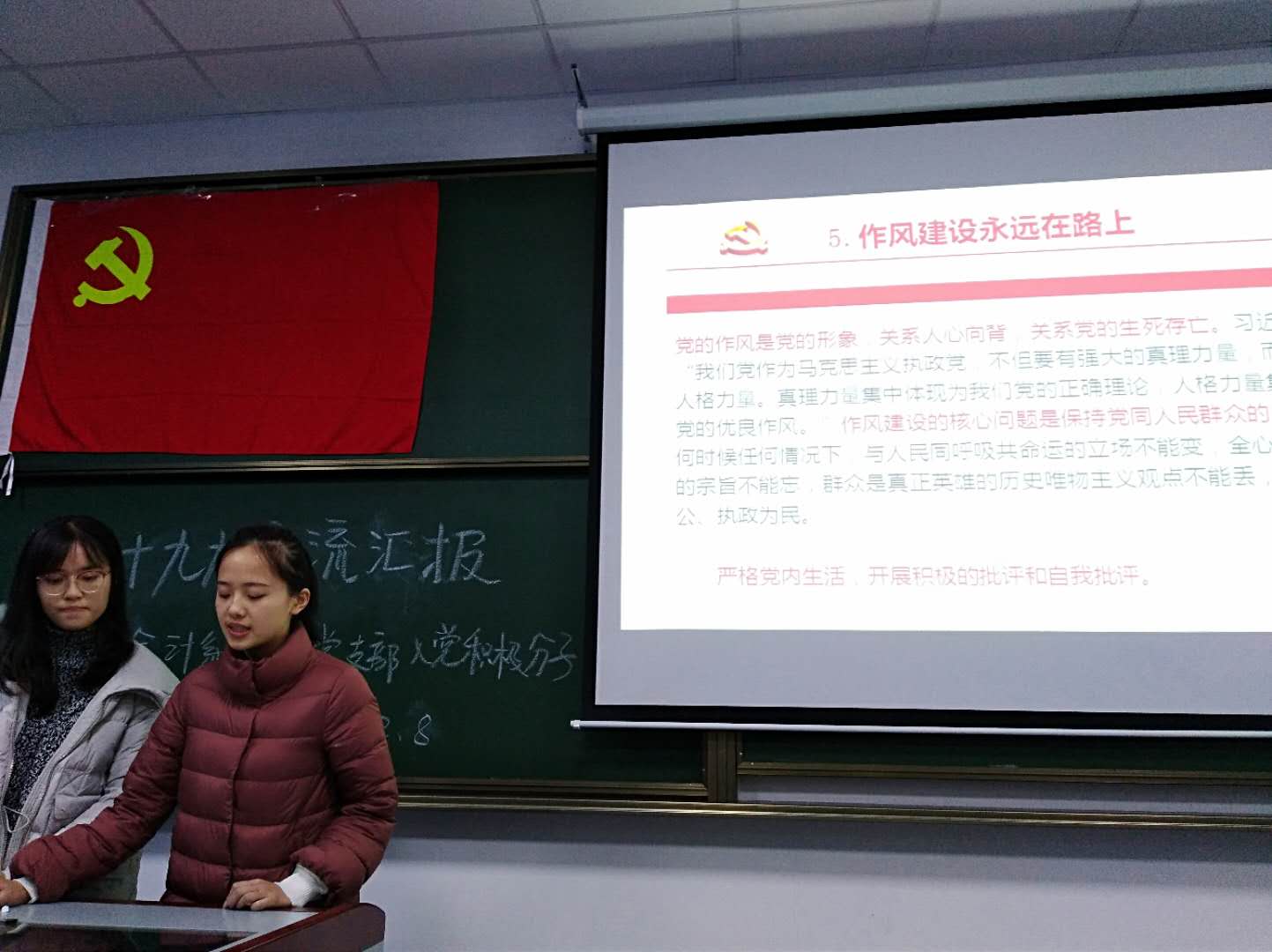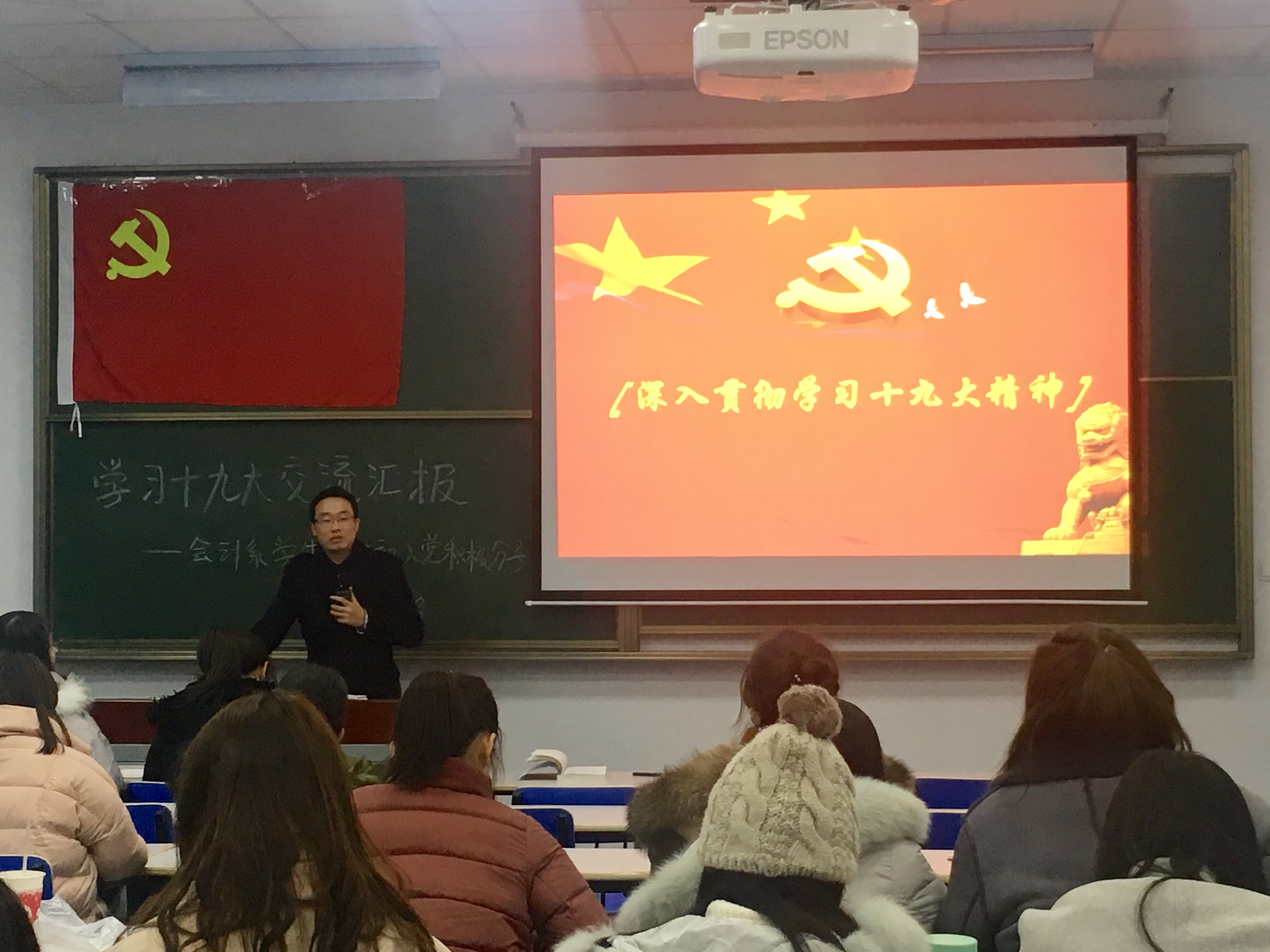 2017年12月8日晚19:30,中共韦德体育会计系员工支部委员会全体入党积极分子在1教116举行了学习党的十九大会议精神的交流分享会。支部所有积极分子和支部全体委员参加交流会。