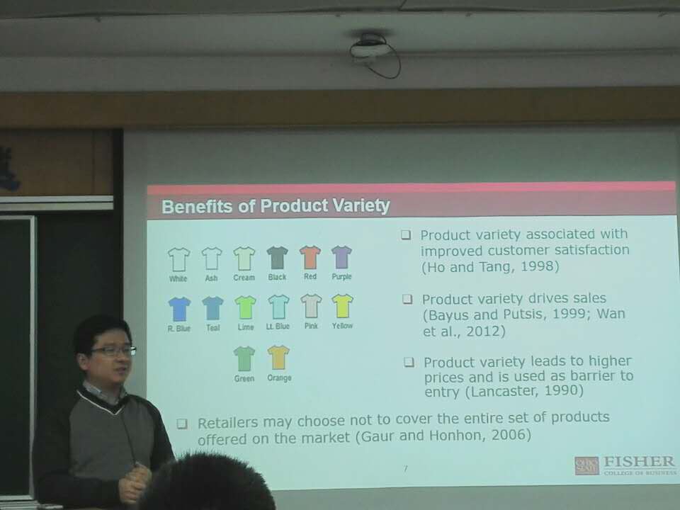 12月28日上午十点,美国俄亥俄州立大学Dr.Xiang Wan为韦德体育全体师生做了一场题为“The Role of Retail Competition in Product Variety Decisions: An Empirical Analysis of Consumer Goods”的学术报告,报告会在旭日楼306教室举行,由徐琪副经理主持。