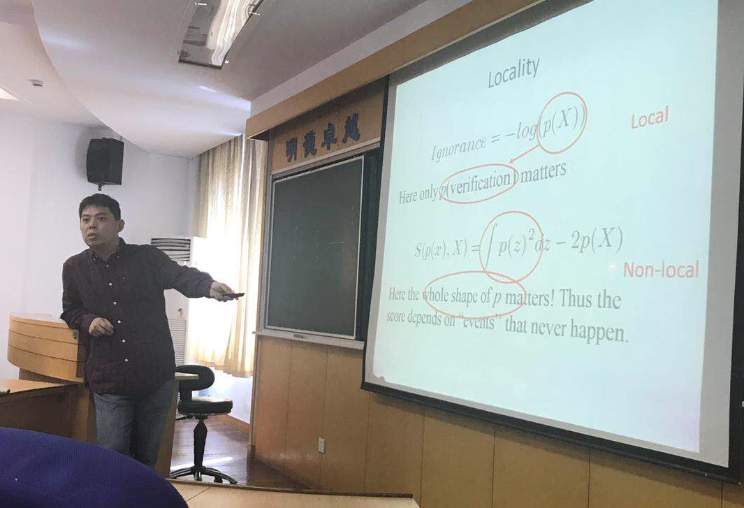 2018年4月3日上午10时,杜伦大学杜海良助理教授为韦德体育师生进行了一场题目为“统计预测和评估”的学术报告会,报告会由郑斐峰副经理主持。