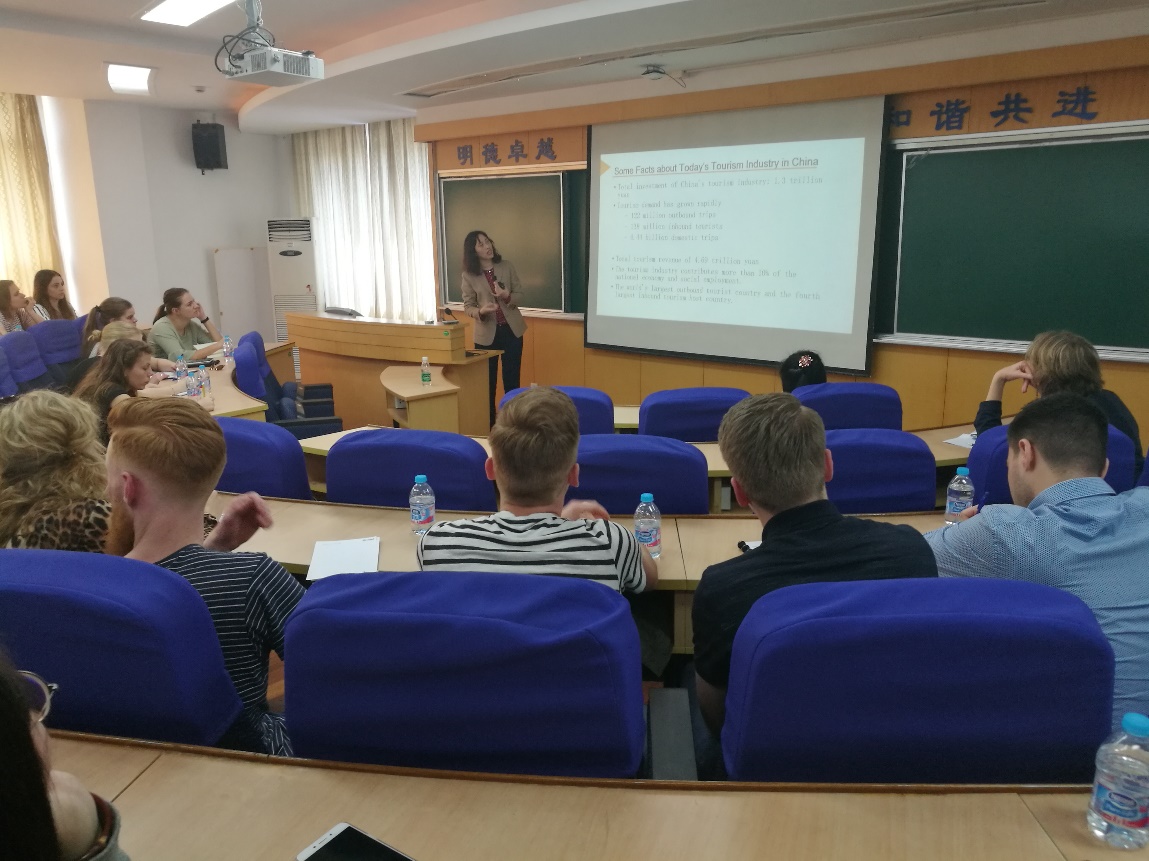 值此交流之际,吴晓隽老师围绕“Development of China’s Lodging Industry Since the Reform and Opening-up”这一主题,给大家带来了一场深度专业的讲座分享。讲座中,吴老师从中国酒店需求的改变、供给的演化两个部分进行阐释,分享中多用数据图客观反映这一进程。向远道而来的荷兰员工介绍了改革开放四十年中国酒店业发展的三阶段,浓缩地展现我国了现代酒店产业的发展脉络,并一一回答了荷兰员工和老师们积极踊跃地提问。