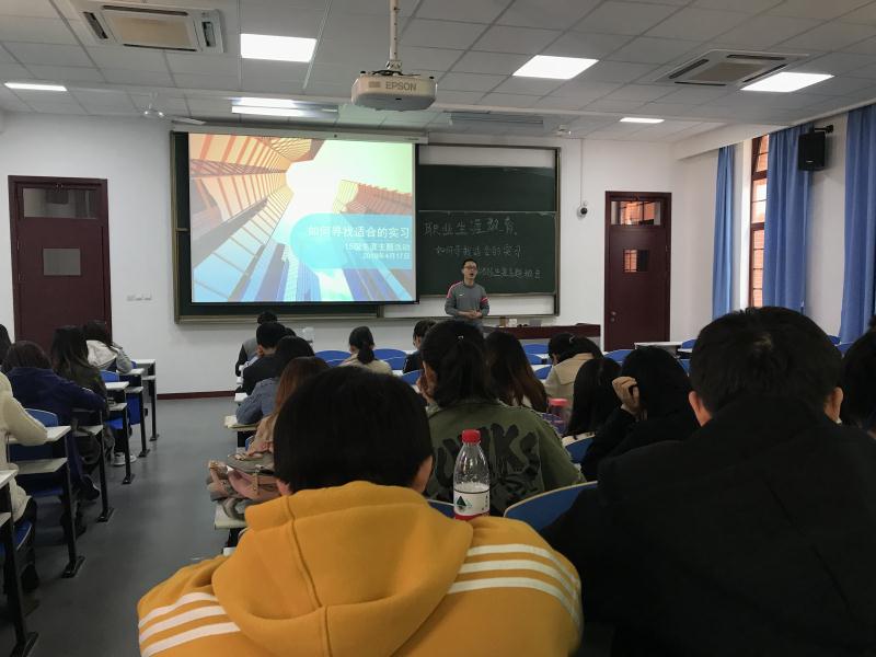 为了更好指导大三员工找一份高质量的实习,以便更好地为就业打基础,2018年4月17日下午,辅导员徐老师邀请了负责公司就业指导的丁伟老师在1教119为员工进行专业指导。班会由徐志德老师主持,2015级会计、财务、电商、物流专业等近150人参加了班会。