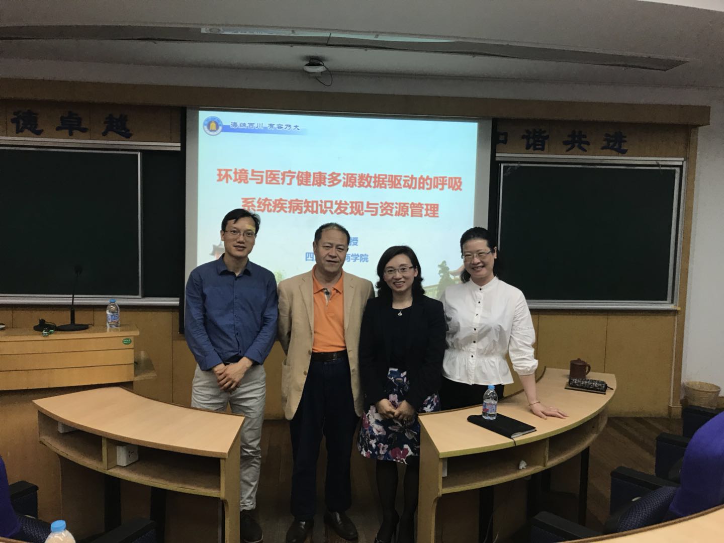 2018年4月23日下午3时,四川大学罗利教授为全院师生进行了一场题目为“环境与医疗健康多源数据驱动的呼吸系统疾病知识发现与资源管理”的学术报告会。公司师生济济一堂认真聆听了报告,教室里几乎座无虚席。