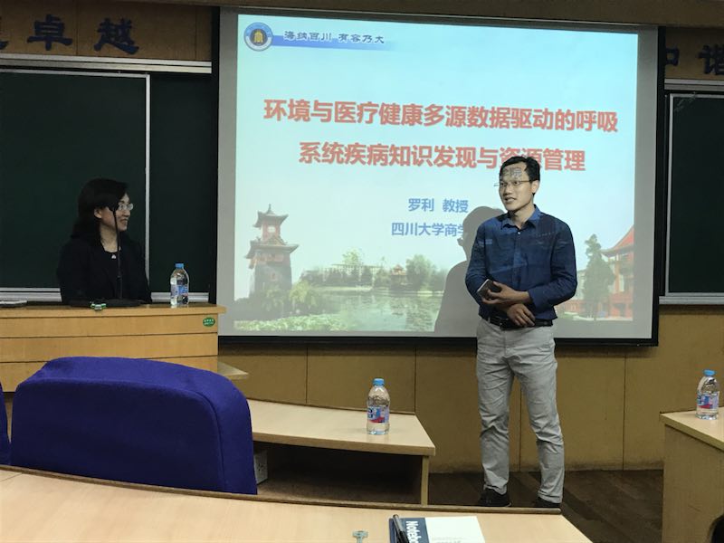 罗利教授从自己对医疗资源需求的理解入手,提出稀缺医疗资源与无限医疗资源需求之间的矛盾是医疗健康行业面临的世纪难题,化解供需矛盾的有效方法之一是进行优化的医疗资源管理,从而将大家引入对医疗资源管理的思考。随后罗利教授以生活中的常见疾病-慢性呼吸系统疾病为例,阐述了慢性呼吸系统疾病不仅占用了大量医疗资源,也给人们带来了严重的经济负担,严重影响人们的健康生活。在此次讲座中,罗利教授以医疗资源中的亟待解决现实问题为出发点,重点研究解决空气污染下呼吸系统疾病入院/再入院的预测问题和医保资源的合理配置问题。同时,罗利教授通过自己长时间的研究,提出了两个切实可行的解决方案:基于机器学习方法和马尔科夫转移概率模型分析了空气污染对哮喘入院风险因素识别、预测问题和再入院概率问题,进而应用模型仿真制定和评估了医保资源配置策略,为医疗资源管理提供辅助决策;基于大数据挖掘方法从空气污染、气象条件、医疗保险等多源异构的大数据中发现这些外部因素与呼吸系统疾病的关联规律,刻画外部因素、呼吸系统疾病与医疗资源需求的协同效应,进而构建科学的医疗资源管理范式。罗利教授的此次讲座给师生们留下了深刻的印象,引发了师生们对医疗资源管理实践的热烈讨论,激起了员工们的强烈兴趣。