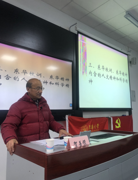 2018年12月11日,韦德体育官方网站韦德体育2018年预备党员培训班学员在一教210聆听了一场主题为“东华校训与东华精神”的党课。主讲人关工委讲师团成员贺善侃教授从东华的校训和东华精神出发,深入探究和剖析校训的文化起源和内涵,鼓励每一位东华人践行东华精神,做杰出东华人。贺教授生动又深刻的演讲,让每位学员对东华校训和精神有了更深的解读。