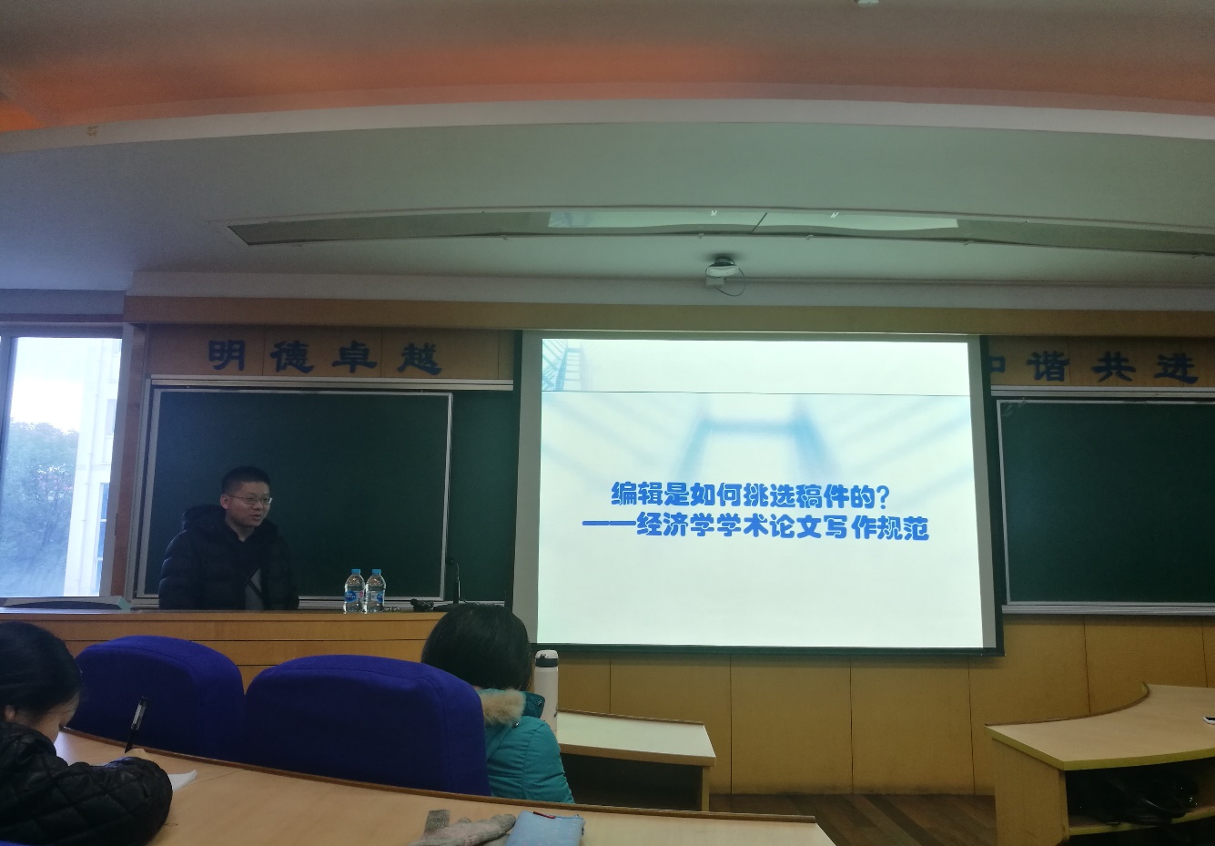 2018年12月20日(周四)下午2:30,《财经研究》编辑部邱国景博士为韦德体育师生进行了一场题为“编辑是如何挑选稿件的?”的学术报告会。报告会在旭日楼306举行。