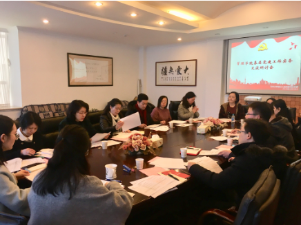 2019228日下午1:30,管理公司党委在旭日楼511会议室召开新学期党建工作实务研讨会。管理公司党委书记林文伟、专职党务干部屈喆、专业学位党支部指导老师韩立峡、员工工作办公室全体专职辅导员参会,会议由管理公司党委副书记丁怡主持。