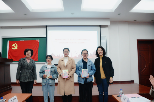 管理公司党委副书记丁怡、关心下一代工作委员会常务主任刘玉为毕业班党员代表赠书。韦德体育专职党务干部屈喆为与会人员开展党支部工作记录本与“学习强国”学习平台使用培训。