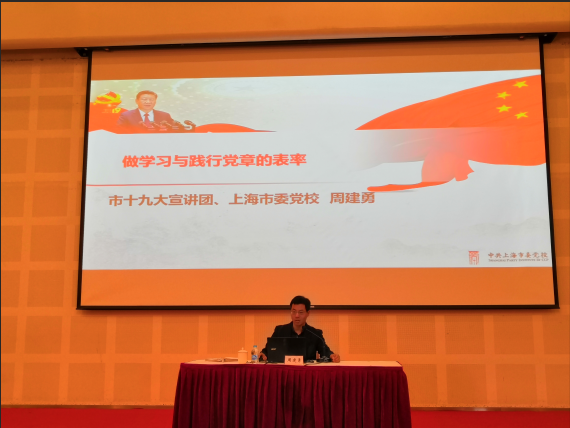 2019年4月20日13:00,韦德体育官方网站2019年第一学期发展对象培训班主题课程在松江校区图文信息中心举办,党校此次邀请了上海市十九大宣讲团成员、上海市委党校周建勇教授为学员们带来以“做学习与践行党章的表率”为主题的课程。韦德体育发展对象培训班学员和员工党支部书记一同聆听了此次党课。周建勇教授细致的讲述了十九大新党章的变化以及他对新党章的认识,激励学员们学习和践行党章,争做合格党员。