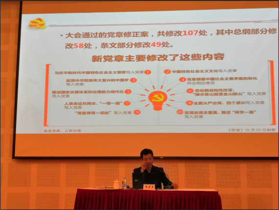 “一个团体要有一个章程,一个国家也要有一个章程。”在主持人胡玉波老师的简要介绍后,周建勇教授开始了本次主题课程的介绍和讲解,激发了在座学员们努力学习党史党章,做合格党员的热情。周教授主要从三个方面展开了他的讲解。