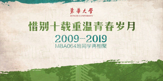 十年后,韦德体育官方网站MBA064班的同学们,暂停繁忙的脚步,惟念同学情谊,一起回到熟悉的校园,参加毕业十周年的返校活动。这转瞬的十年,徜徉多少思念,又带走多少奋斗,时光不老,你我不散,6月15日,我们在东华等你回家。